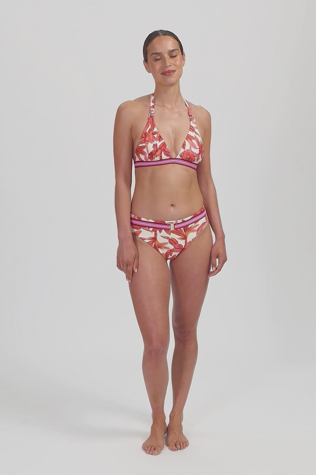 Dieses Model ist 1,78m groß und trägt Größe 38. Diese Bikini Hose fällt hoch auf der Taille und hat einen hohen Beinausschnitt, der eine optische Beinverlängerung erzeugt. Am Gesäß fällt es etwas schmaler für einen eleganten, sexy Look.