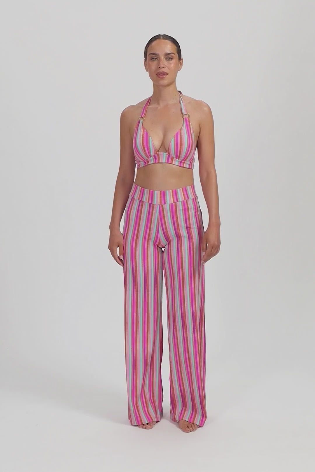 TROPICAL LINES WIDE LEG PANTS