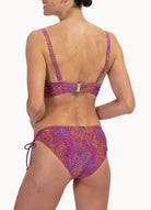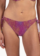 Dit model is 1,75m en draagt maat 38. Dit bikinibroekje valt laag op jouw heupen en heeft een medium bedekking op jouw billen.