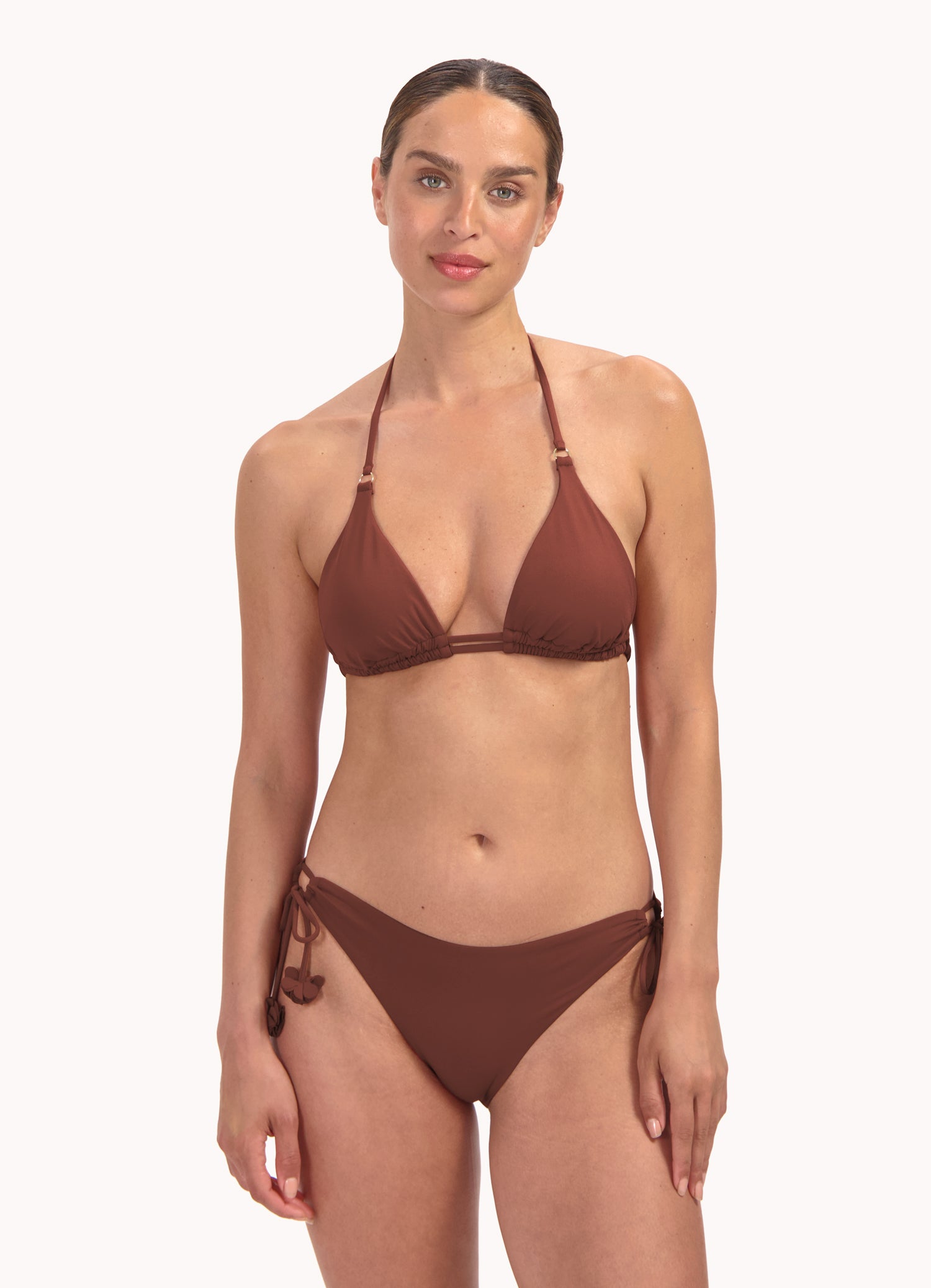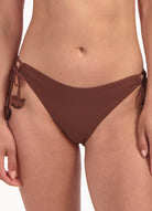 Dit model is 1,78m en draagt maat 38. Dit bikinibroekje valt laag op jouw heupen en heeft een medium bedekking op jouw billen.