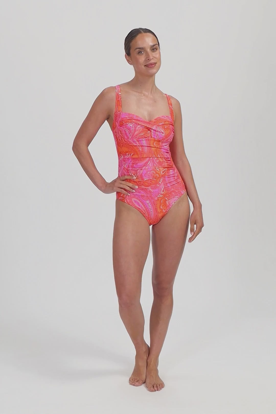 Dit model is 1,78m en draagt een maat 38B. Dit badpak heeft hogere, voorgevormde cups & brede bandjes voor extra ondersteuning en meer bedekking. De voorkant van het badpak is gevoerd met power mesh voor een licht corrigerend effect. Geschikt voor cupmaten B t/m F. Dit badpak is verkrijgbaar in cup B, D en F. Heb je bijvoorbeeld een cup C of E? Kies dan een cupmaat groter. Ga voor jouw reguliere confectiemaat.
