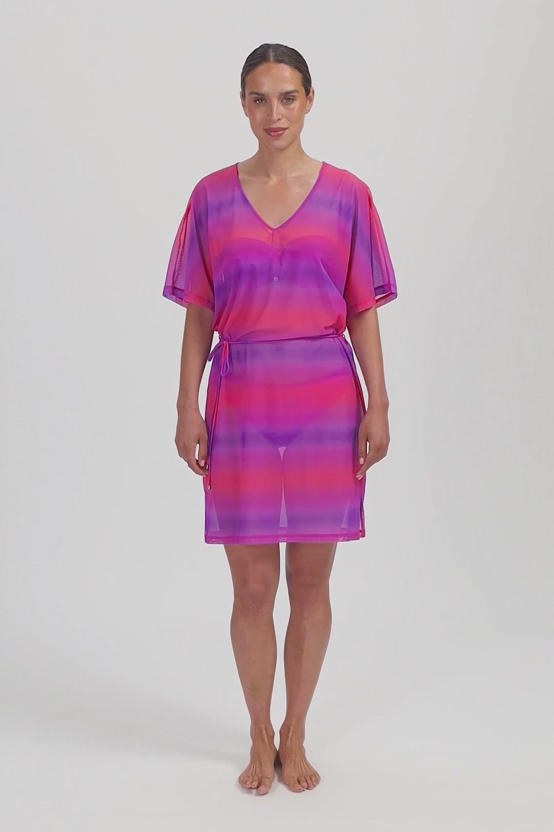 - Luchtige tuniek met vlindermouwen en diepe V-hals