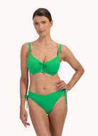 Model is 1,75 m en draagt maat 38E. Geschikt voor zowel kleine als grote borsten. Deze bikinitop biedt een goede ondersteuning door de gevoerde cups en beugel. Het heeft een comfortabele pasvorm. Heb je een grotere omvangsmaat? Dan is deze bikinitop een favoriete keuze.