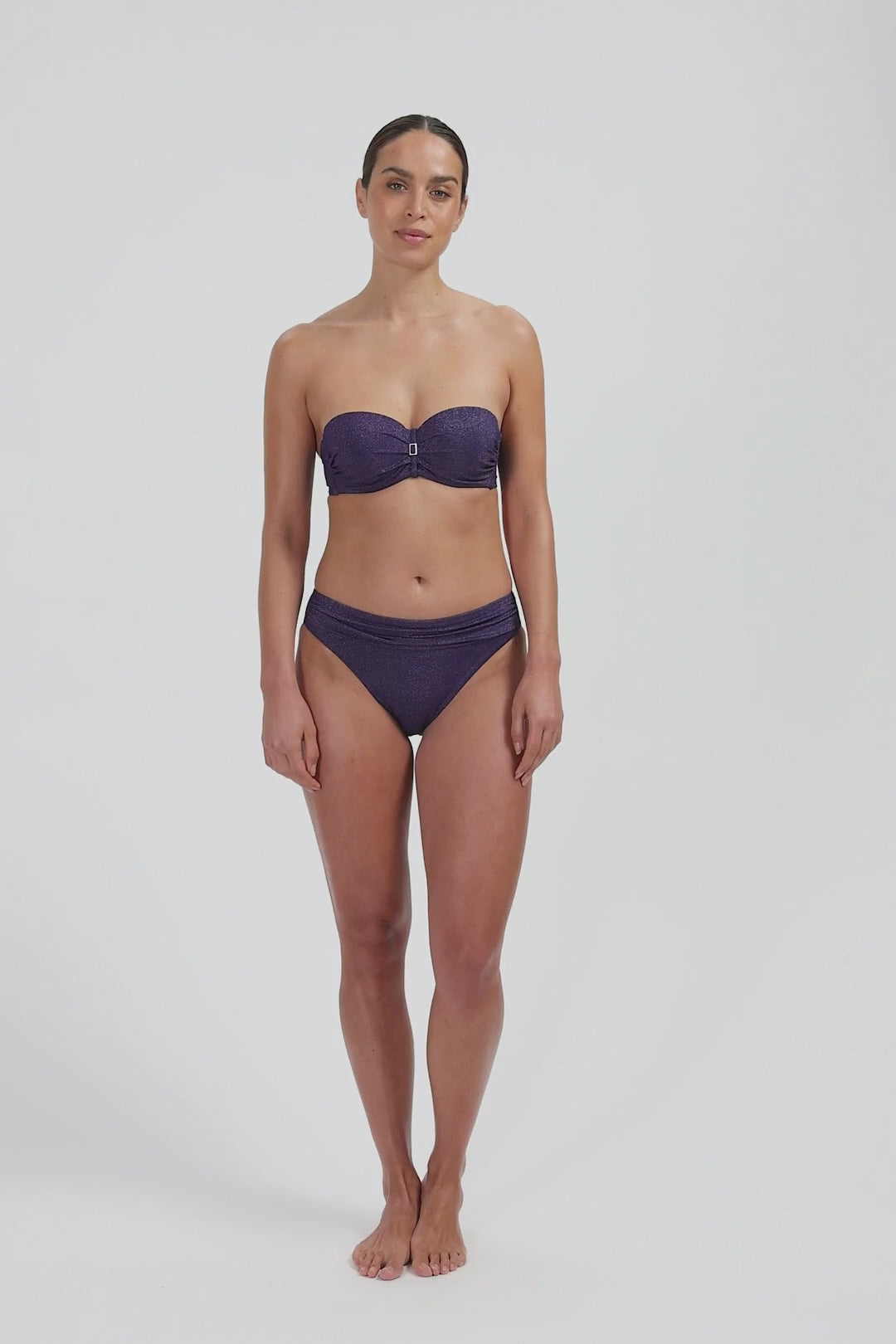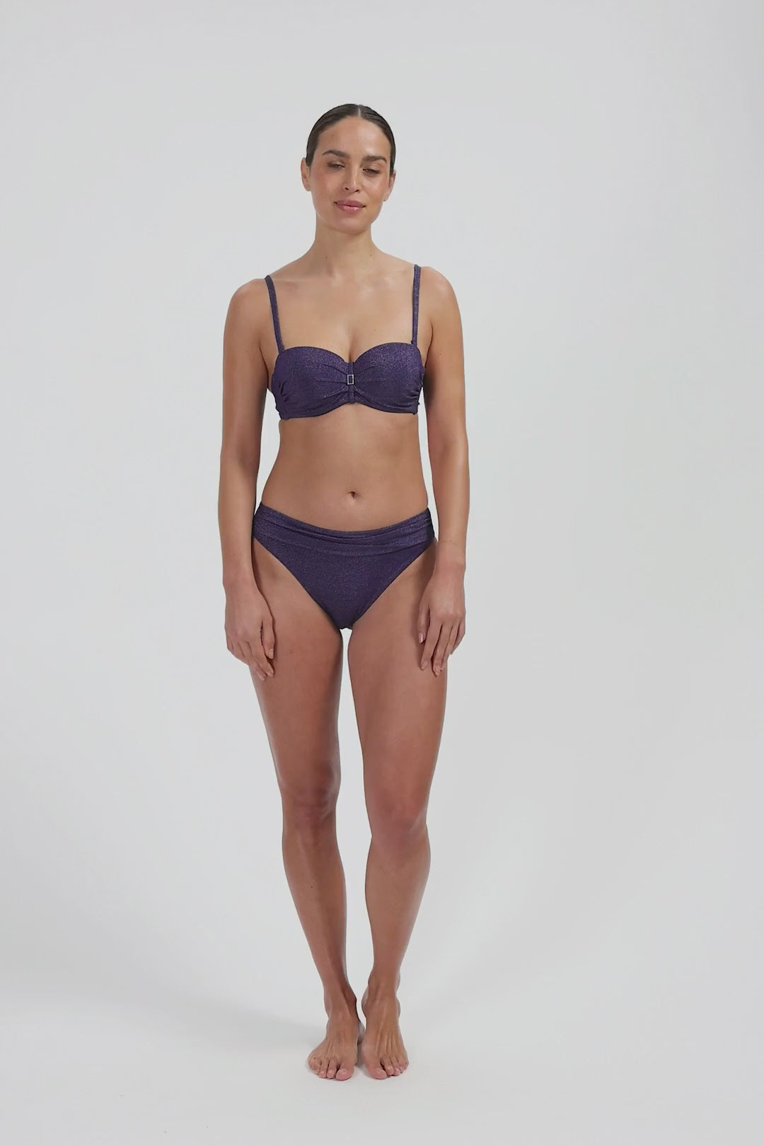 Model is 1,78 m en draagt maat 38B. Deze bikinitop biedt een subtiele lift, een mooi decolleté en laat je schouders prachtig uitkomen. Draagbaar als strapless, halter of met rechte schouderbandjes, zodat je zelf kiest wat jouw figuur het meest flatteert. De bikinitop heeft een goede ondersteuning door de beugel en voorgevormde cups. Zelfs strapless zit deze top nog stevig! Vanaf cup D heeft deze top bredere bandjes voor extra ondersteuning.