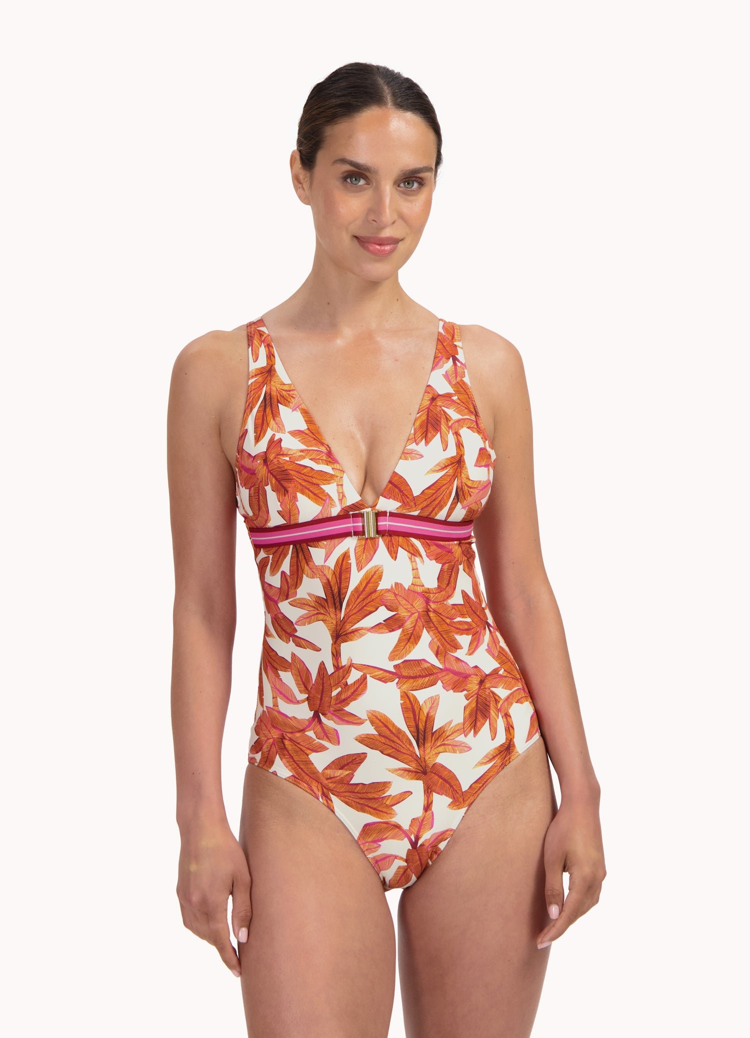 Dit model is 1.78 m en draagt maat 38B. De diepe V-hals zorgt voor een mooi decolleté. Het heeft een goede bedekking op de billen. Dit badpak wordt in cup B en D aangeboden. Draag je cupmaat A of C? Kies dan een cupmaat groter. Ga voor jouw reguliere confectiemaat.